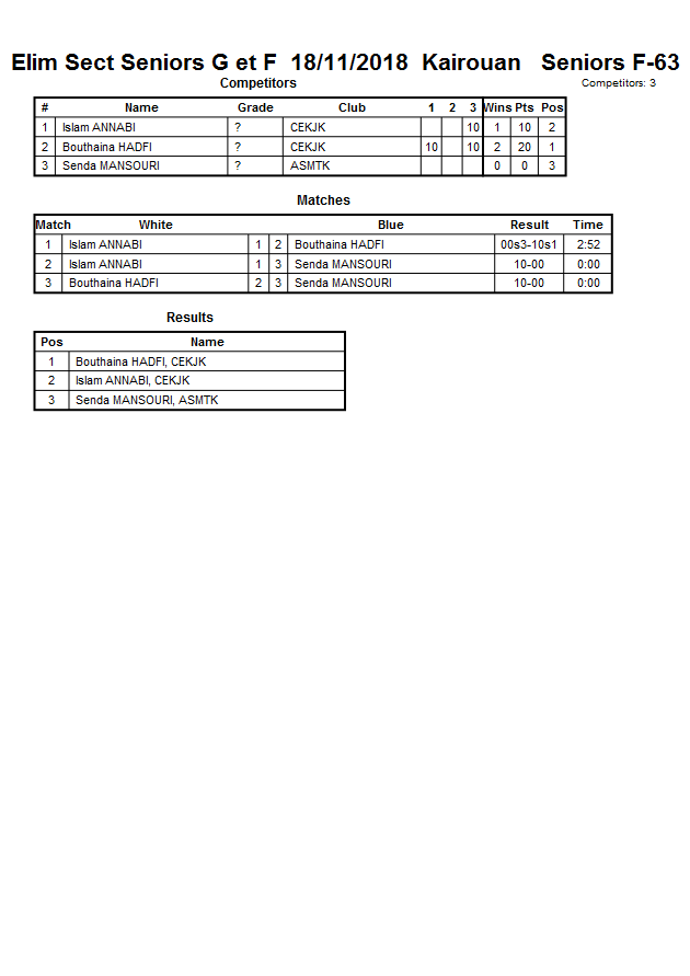 Elim Sect Seniors G et F 18/11/2018 Kairouan