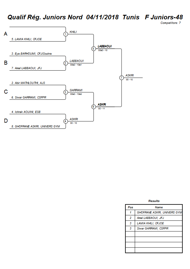 Qualif Rég. Juniors Nord 04/11/2018 Tunis