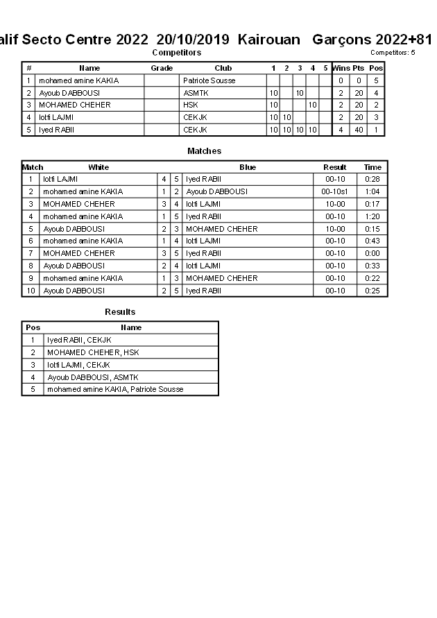 Qualif Secto Centre 2022 20/10/2019 Kairouan