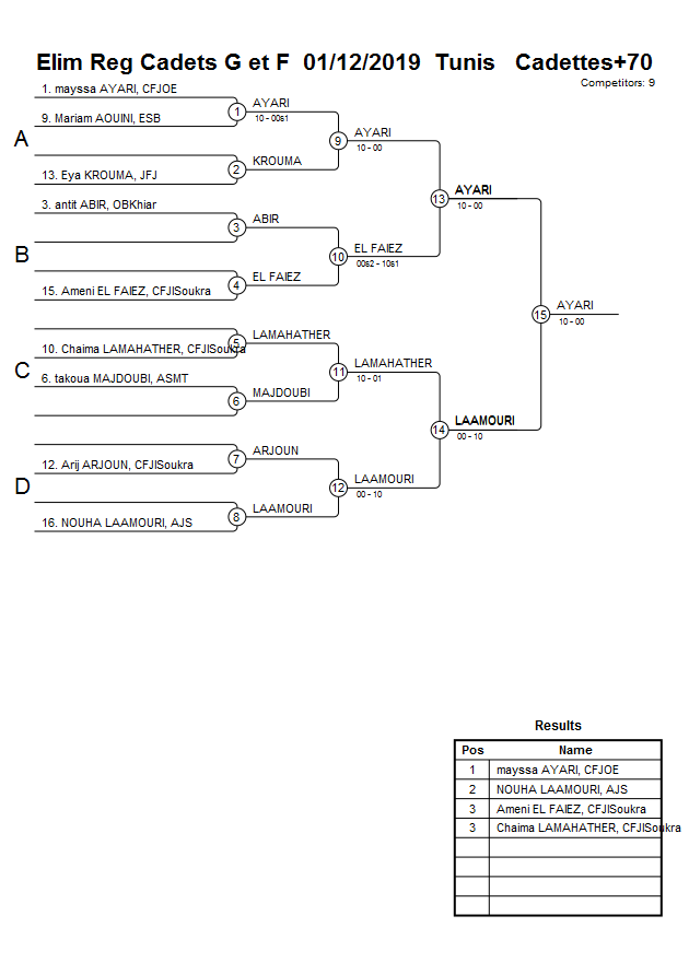 Elim Reg Cadets G et F 01/12/2019 Tunis