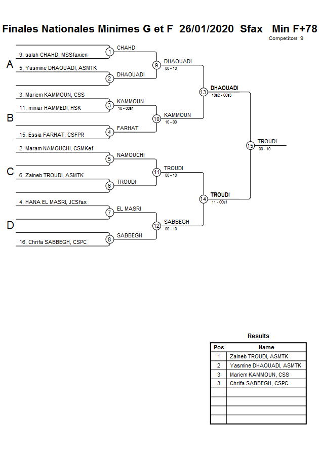 Finales Nationales Minimes G et F 26/01/2020 Sfax