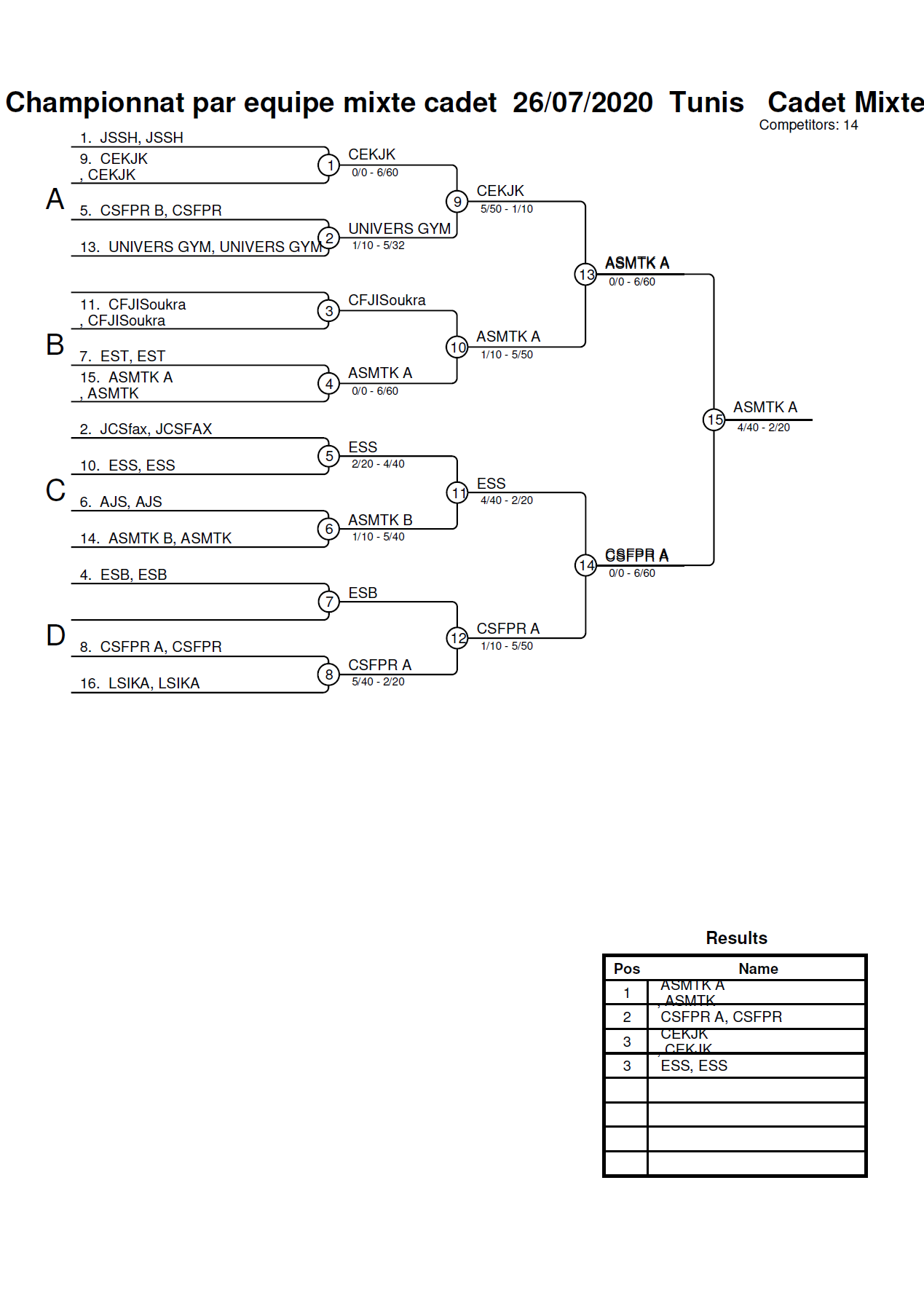 Championnat par equipe mixte cadet 26/07/2020 Tunis