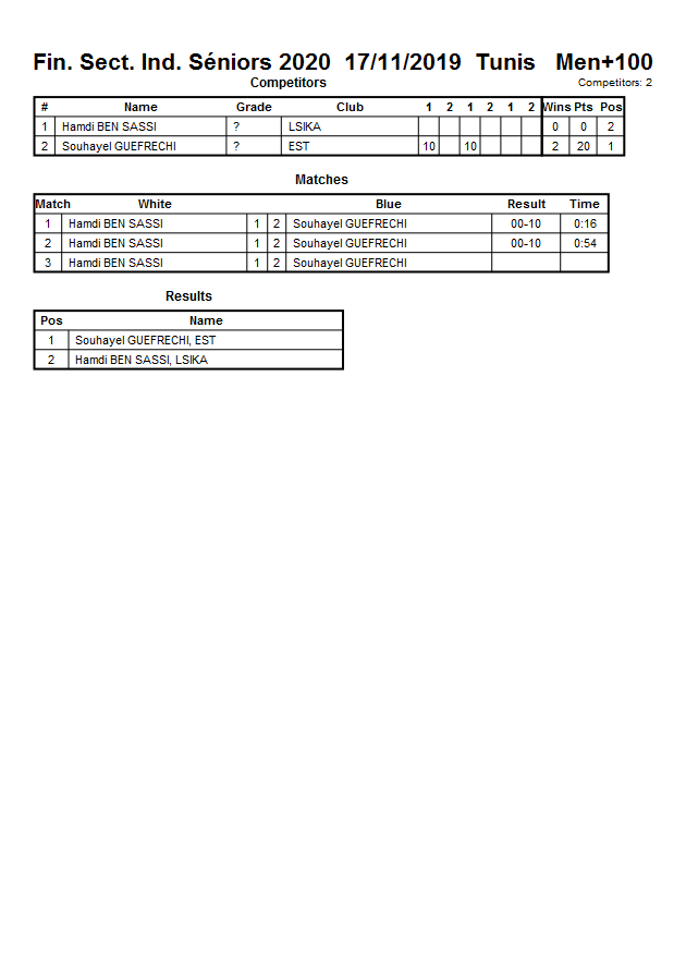 Fin. Sect. Ind. Séniors 2020 17/11/2019 Tunis