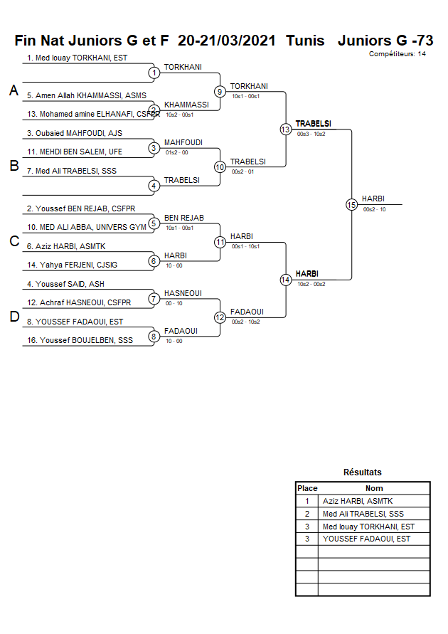 Fin Nat Juniors G et F 20-21/03/2021 Tunis