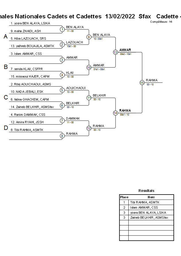 Finales Nationales Cadets et Cadettes 13/02/2022 Sfax