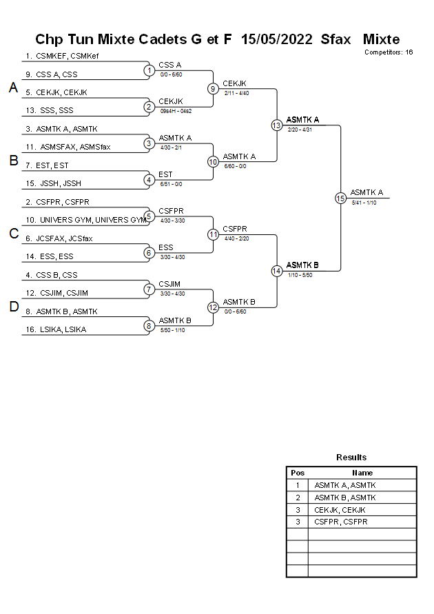 Chp Tun Mixte Cadets G et F 15/05/2022 Sfax