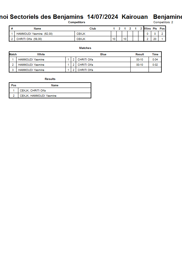 Tournoi Sectoriels des Benjamins 14/07/2024 Kairouan