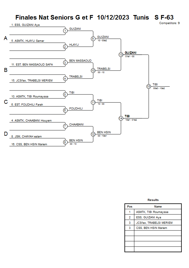 Finales Nat Seniors G et F 10/12/2023 Tunis