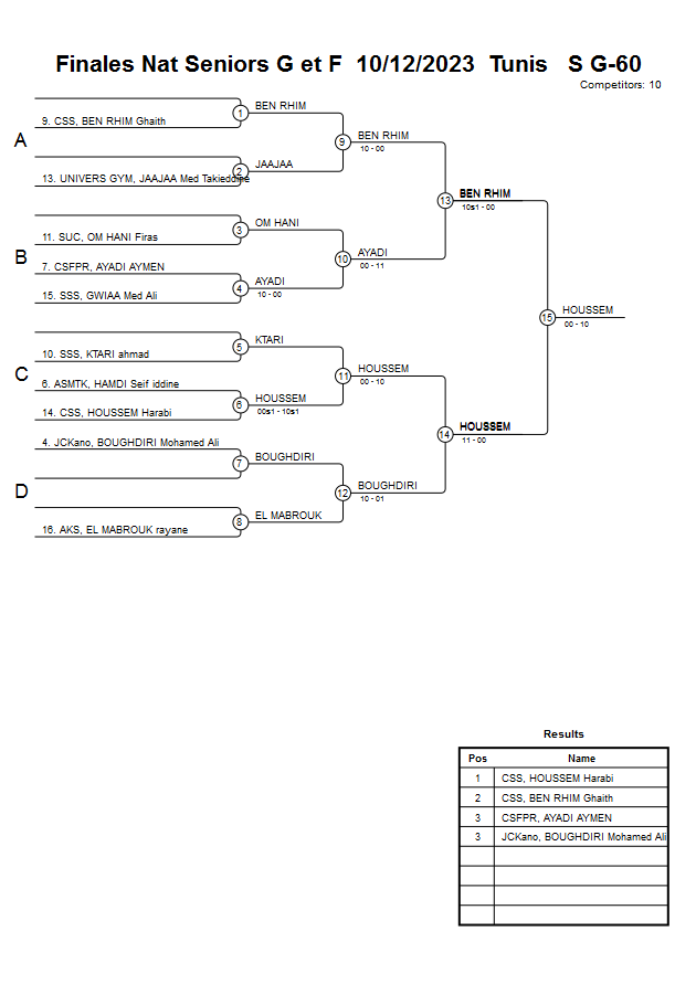 Finales Nat Seniors G et F 10/12/2023 Tunis