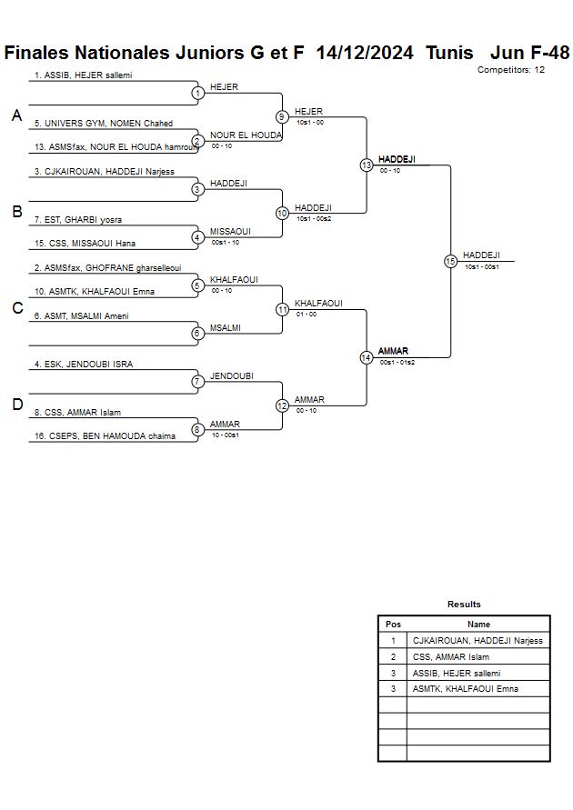 Finales Nationales Juniors G et F 14/12/2024 Tunis