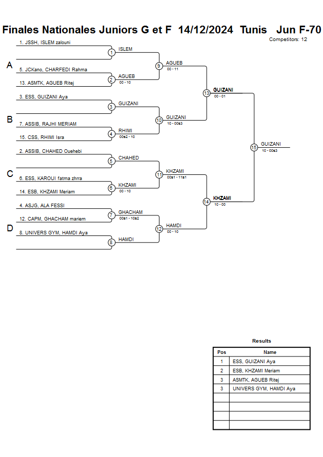 Finales Nationales Juniors G et F 14/12/2024 Tunis