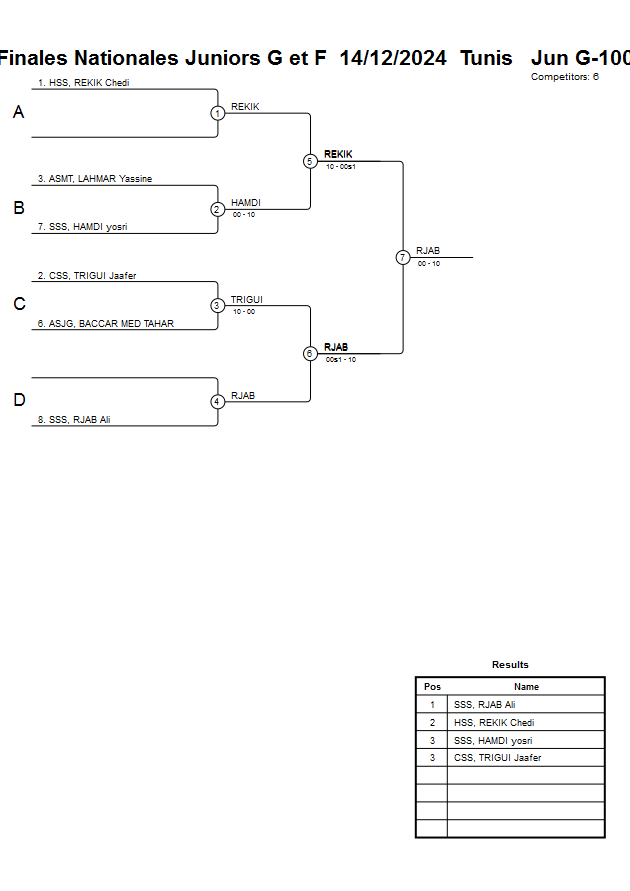 Finales Nationales Juniors G et F 14/12/2024 Tunis
