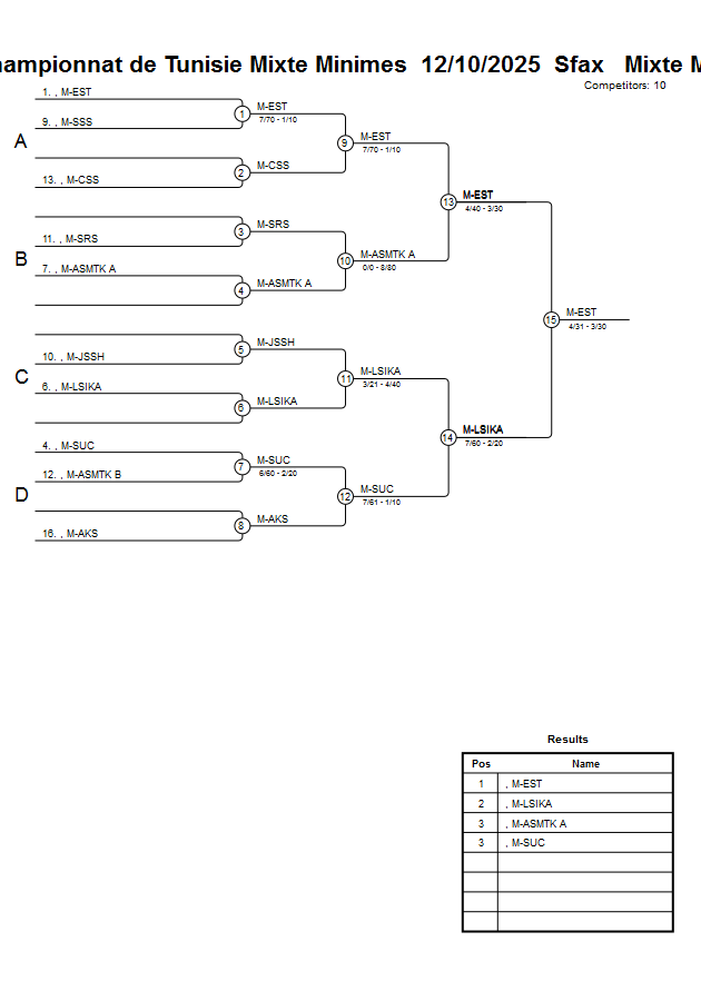 Championnat de Tunisie Mixte Minimes 12/10/2025 Sfax