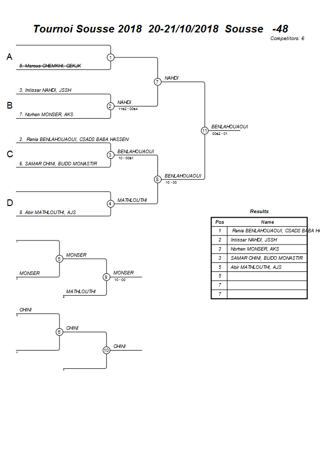 Tournoi Sousse 2018 20-21/10/2018 Sousse