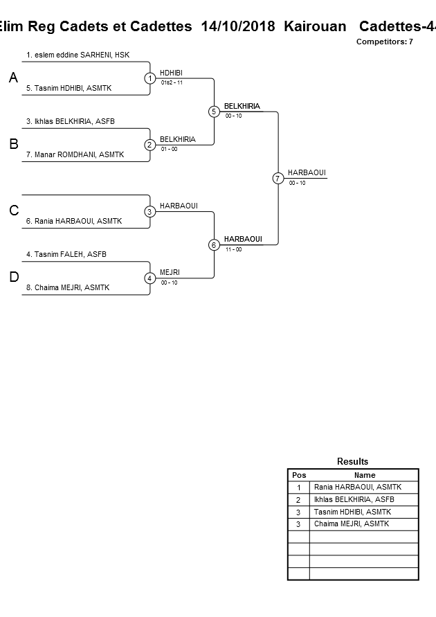 Elim Reg Cadets et Cadettes 14/10/2018 Kairouan