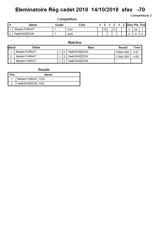 Eleminatoire Rég cadet 2018 14/10/2018 sfax