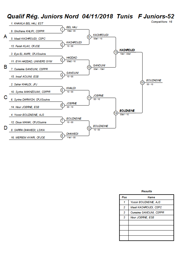 Qualif Rég. Juniors Nord 04/11/2018 Tunis