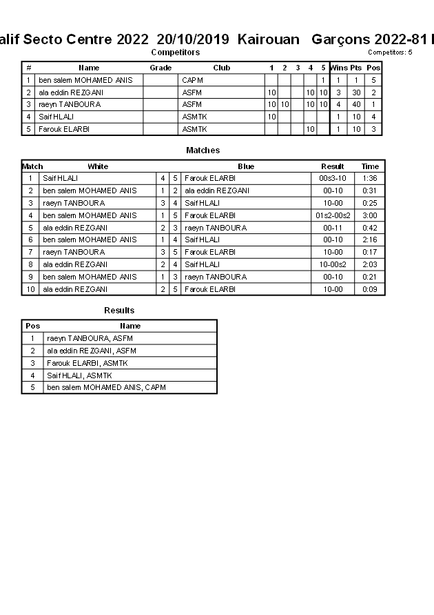 Qualif Secto Centre 2022 20/10/2019 Kairouan
