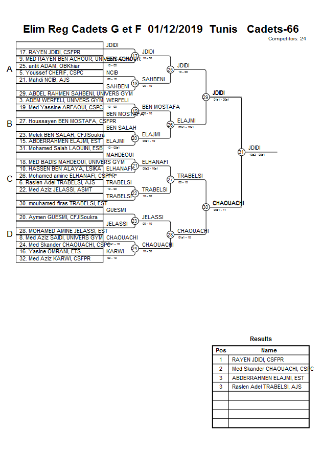 Elim Reg Cadets G et F 01/12/2019 Tunis