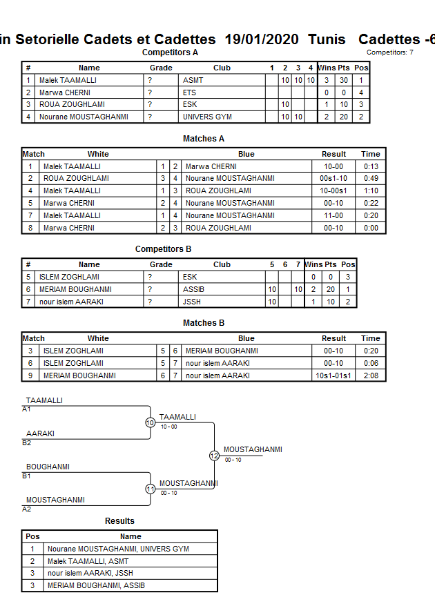 Fin Setorielle Cadets et Cadettes 19/01/2020 Tunis