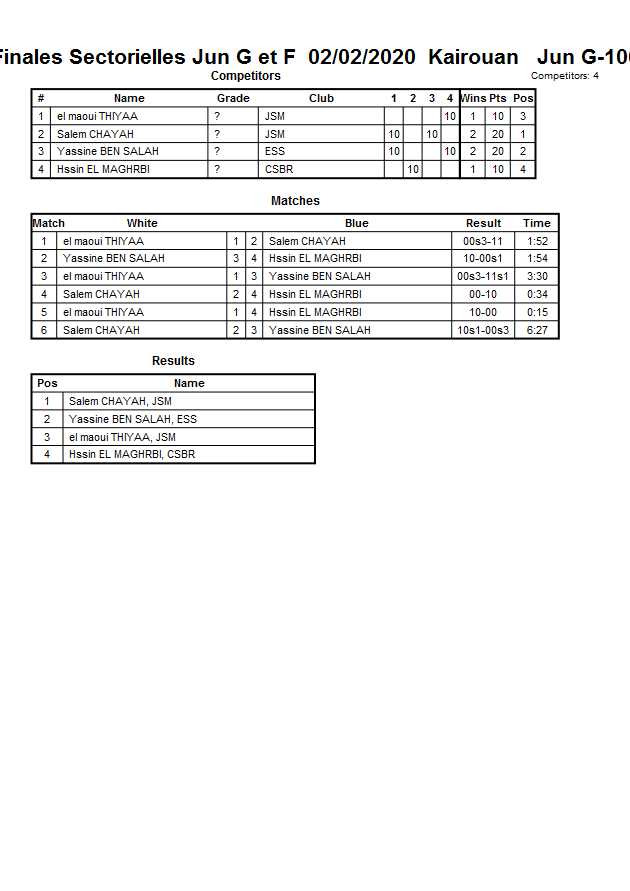 Finales Sectorielles Jun G et F 02/02/2020 Kairouan