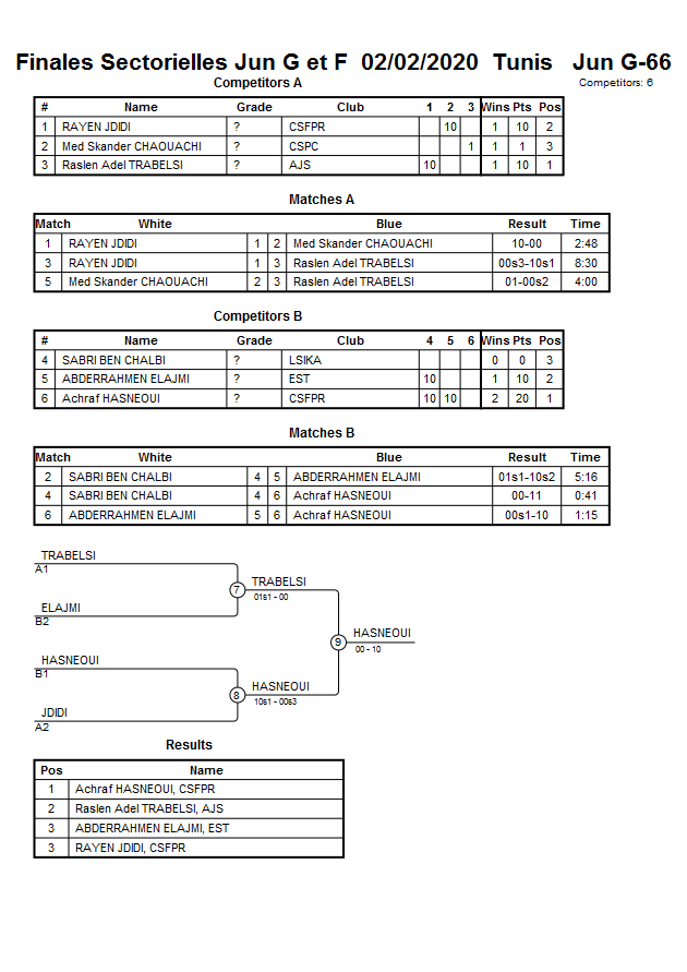 Finales Sectorielles Jun G et F 02/02/2020 Tunis