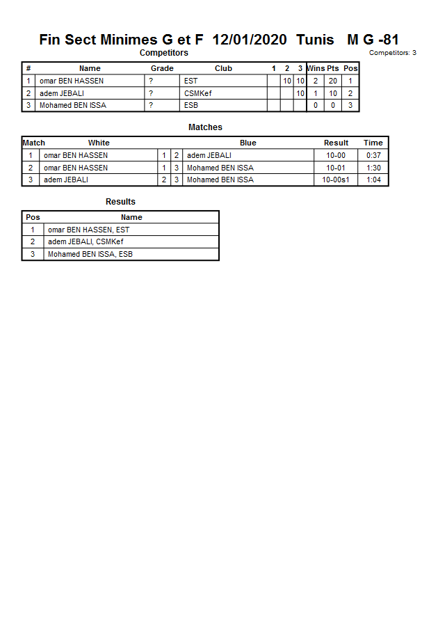 Fin Sect Minimes G et F 12/01/2020 Tunis
