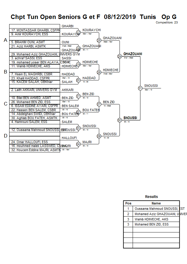 Chpt Tun Open Seniors G et F 08/12/2019 Tunis