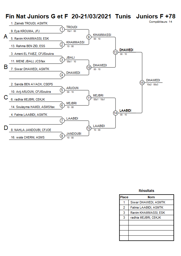 Fin Nat Juniors G et F 20-21/03/2021 Tunis