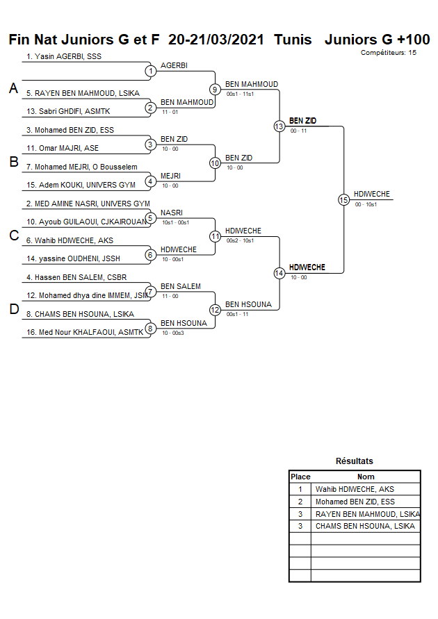 Fin Nat Juniors G et F 20-21/03/2021 Tunis
