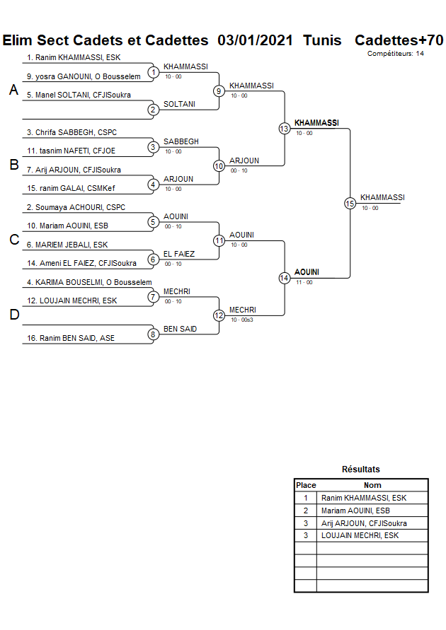 Elim Sect Cadets et Cadettes 03/01/2021 Tunis