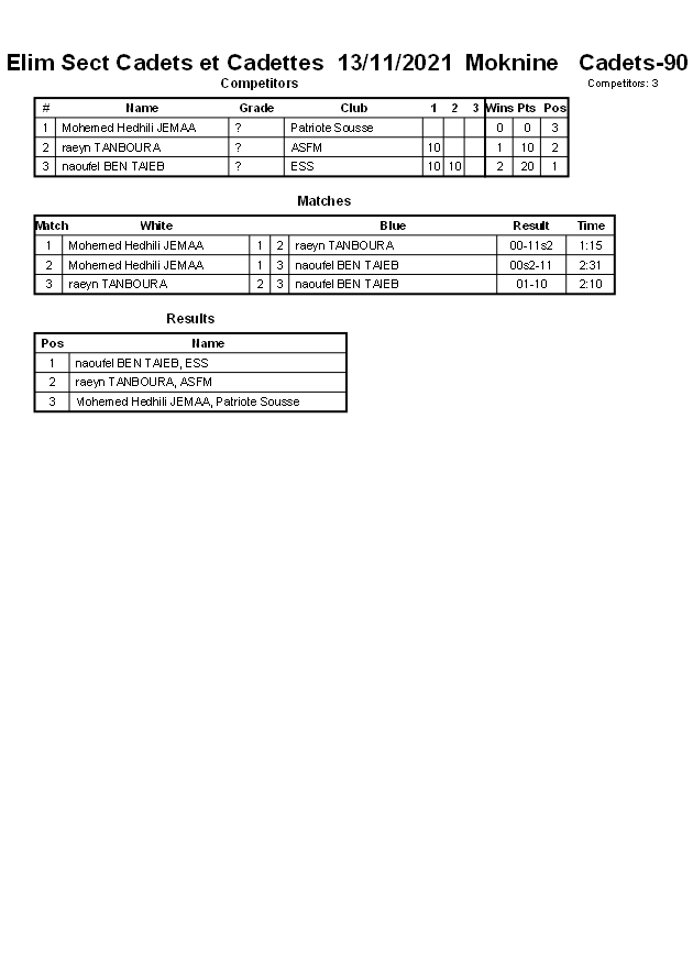 Elim Sect Cadets et Cadettes 13/11/2021 Moknine