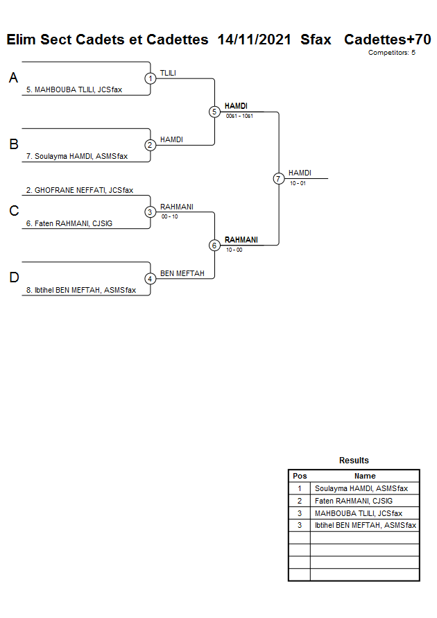 Elim Sect Cadets et Cadettes 14/11/2021 Sfax