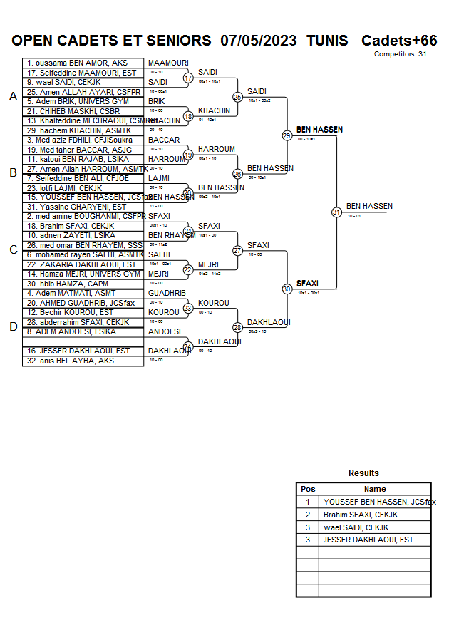OPEN CADETS ET SENIORS 07/05/2023 TUNIS