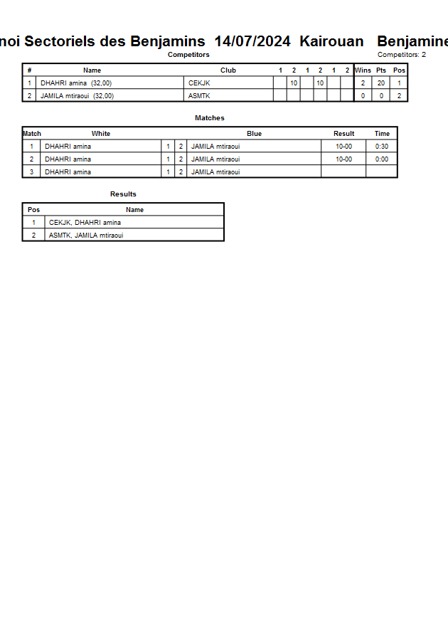 Tournoi Sectoriels des Benjamins 14/07/2024 Kairouan