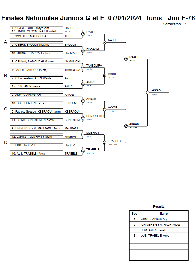 Finales Nationales Juniors G et F 07/01/2024 Tunis