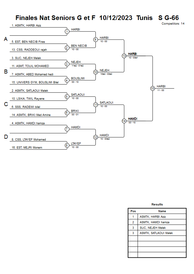 Finales Nat Seniors G et F 10/12/2023 Tunis