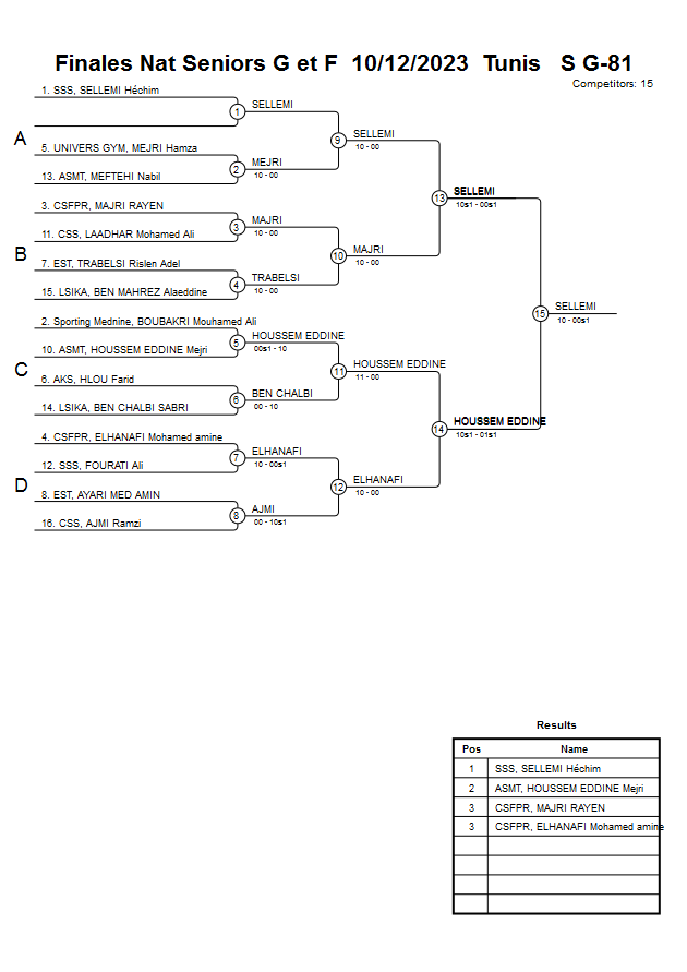 Finales Nat Seniors G et F 10/12/2023 Tunis
