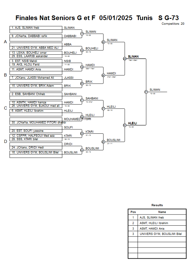Finales Nat Seniors G et F 05/01/2025 Tunis